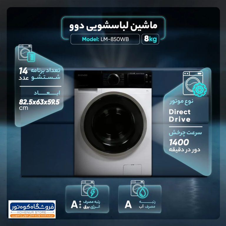 ماشین لباسشویی دوو مدل LM-850WB ظرفیت 8 کیلوگرم
