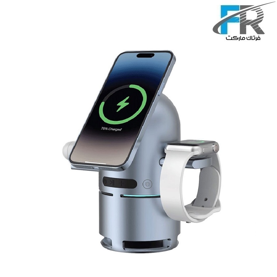 شارژر وایرلس و اسپیکر بلوتوث پاورولوژی مدل PWCUQC039