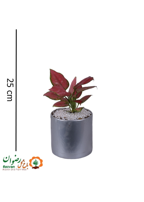 آگلونما قرمز به همراه گلدان مهرنی 15 نقره ای AR7