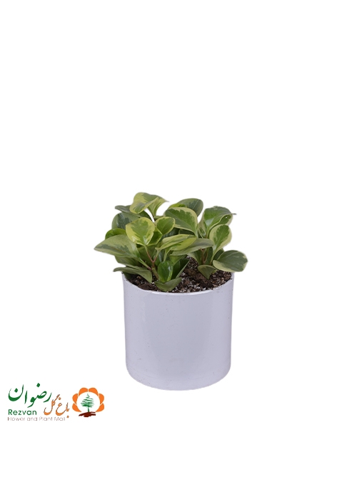 گیاه قاشقی طلایی همراه گلدان مهرنی 17.5 سفید کد PC3
