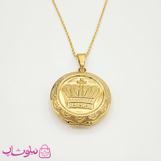 گردنبند لاکت دایره طرح تاج طلایی