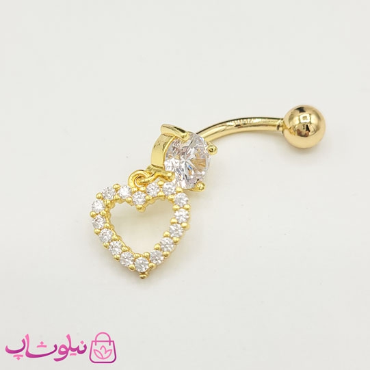 پیرسینگ ناف آویزدار طرح قلب طلایی