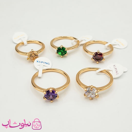 انگشتر سولیتر ژوپینگ با نگین رنگی کد 596