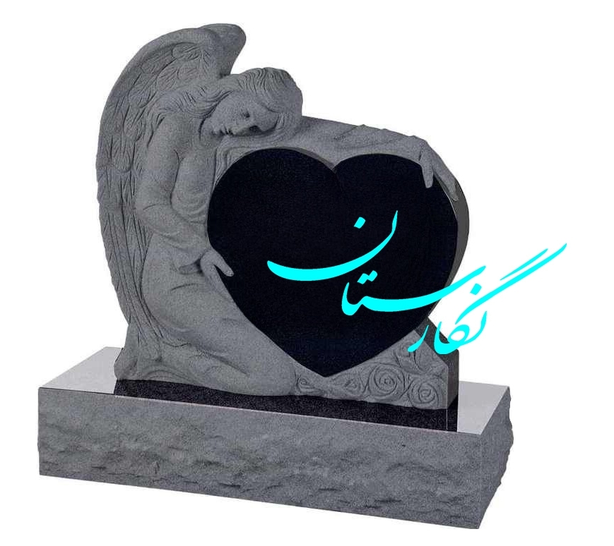 کتیبه تاج گرانیت مشکی طرح فرشته و قلب کد ۱۴