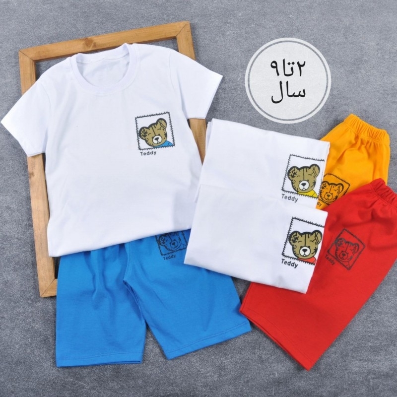ست تیشرت و شلوارک بچگانه قاب تدی رنگی کد 8320