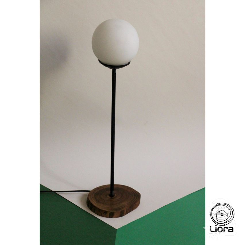 آباژور رومیزی پایه چوبی لیورا مدل اُویلا با لامپ ادیسونی کد 3006