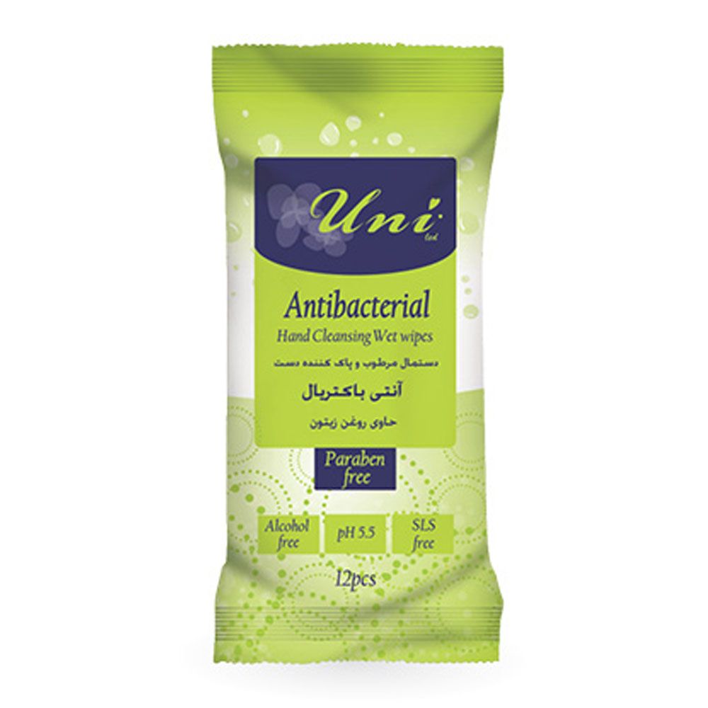 دستمال مرطوب و پاک کننده دست آنتی باکتریال 12 برگی یونی لد