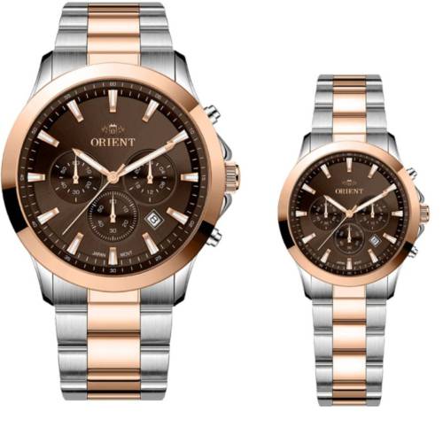 ساعت مچی ست اورینت مدل 1095 بند استیلرزگلد صفحه قهوه ای