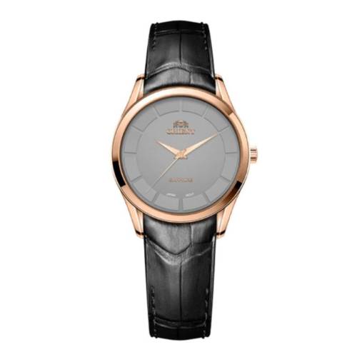 ساعت مچی زنانه اورینت مدل 1063 بند مشکی صفحه خاکستری قاب رزگلد