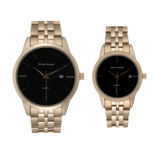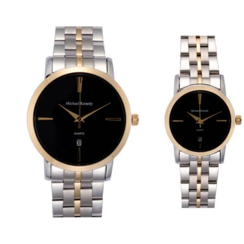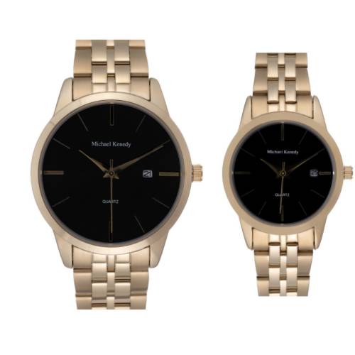 ساعت مچی ست مایکل کندی مدل 0907-0908 بند استیلطلایی صفحه مشکی