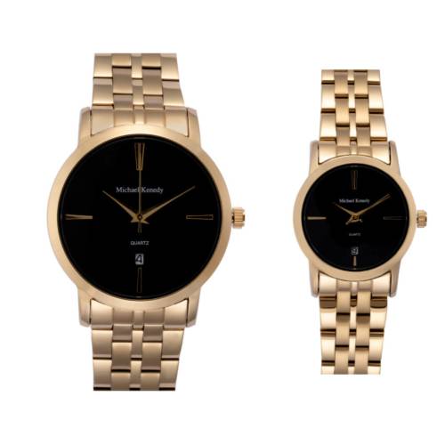 ساعت مچی ست مایکل کندی مدل 0907-0908 بند طلایی صفحه مشکی