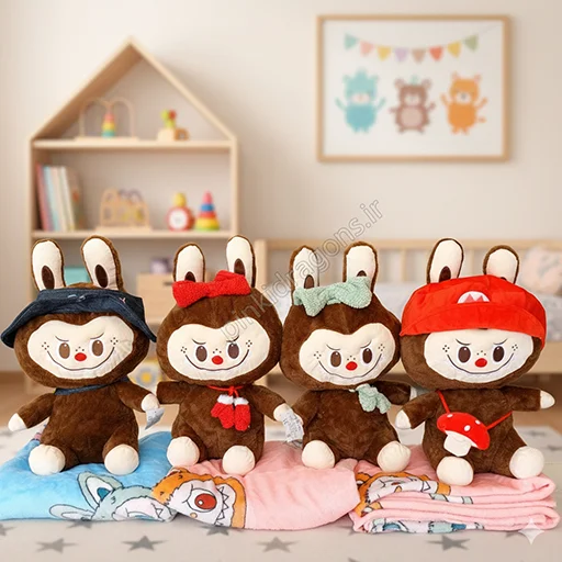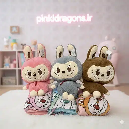 پتو بالشتی عروسکی لبو بو (Labubu) دستمال گردنی