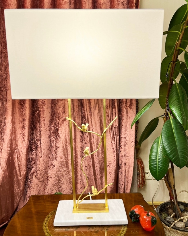 آباژور رومیزی مدرن برنجی دستساز گالری عزیزی مدل حلقه گل و پرنده