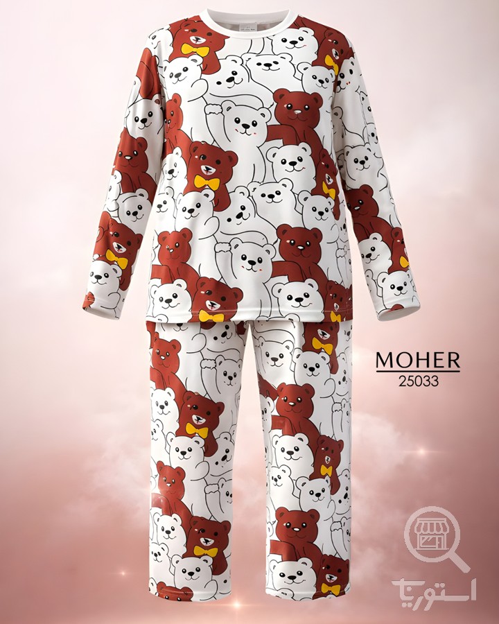 ست لباس راحتی سایز بزرگ با طرح خرس عروسکی