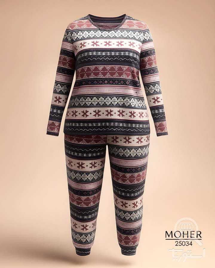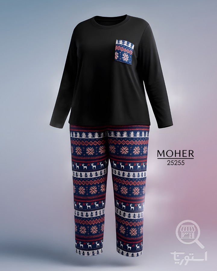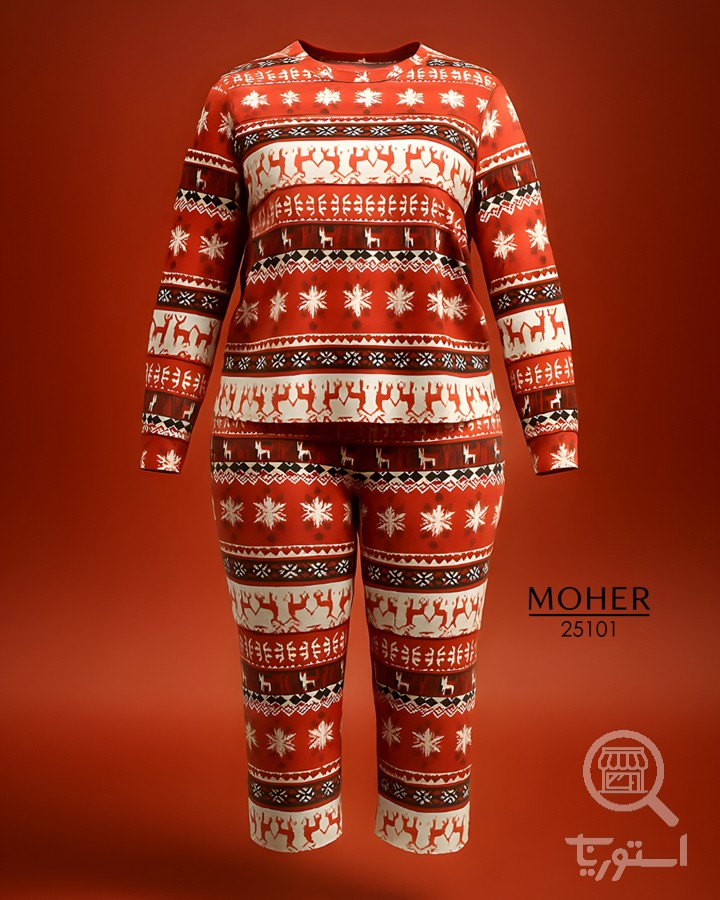 ست بلوز و شلوار زنانه سایز بزرگ طرح گوزنی زمستانی