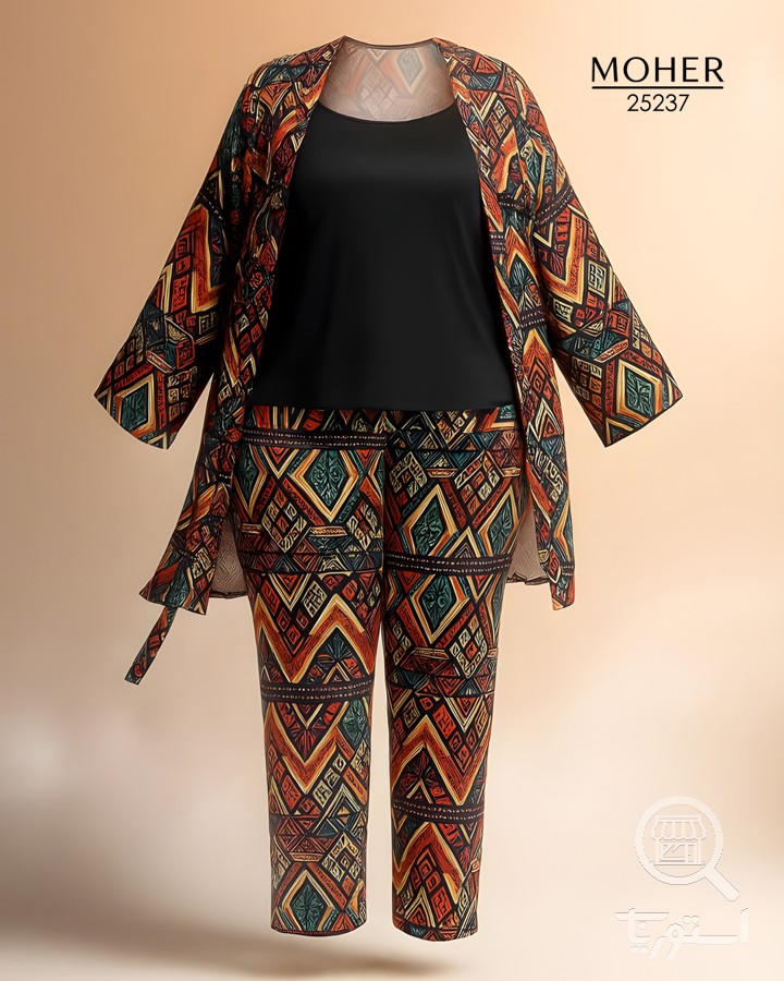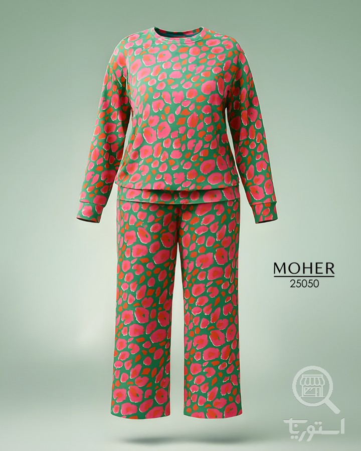 ست لباس راحتی سایز بزرگ طرح پلنگی رنگی