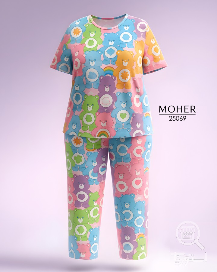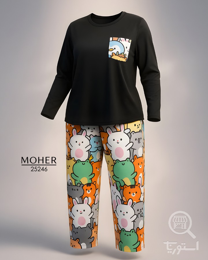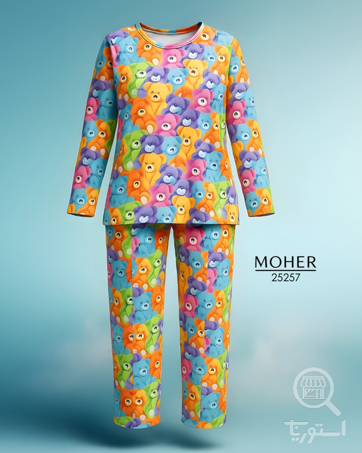 ست بلوز و شلوار راحتی سایز بزرگ طرح خرس رنگی