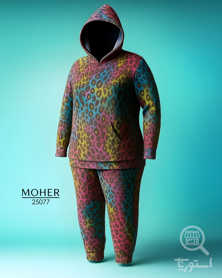 ست هودی و شلوار کرکدار سایز بزرگ طرح پلنگی رنگی
