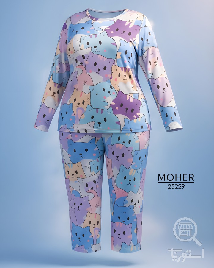 ست راحتی زنانه سایز بزرگ طرح گربه