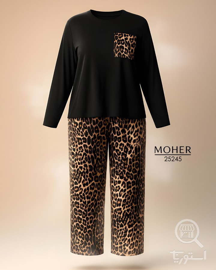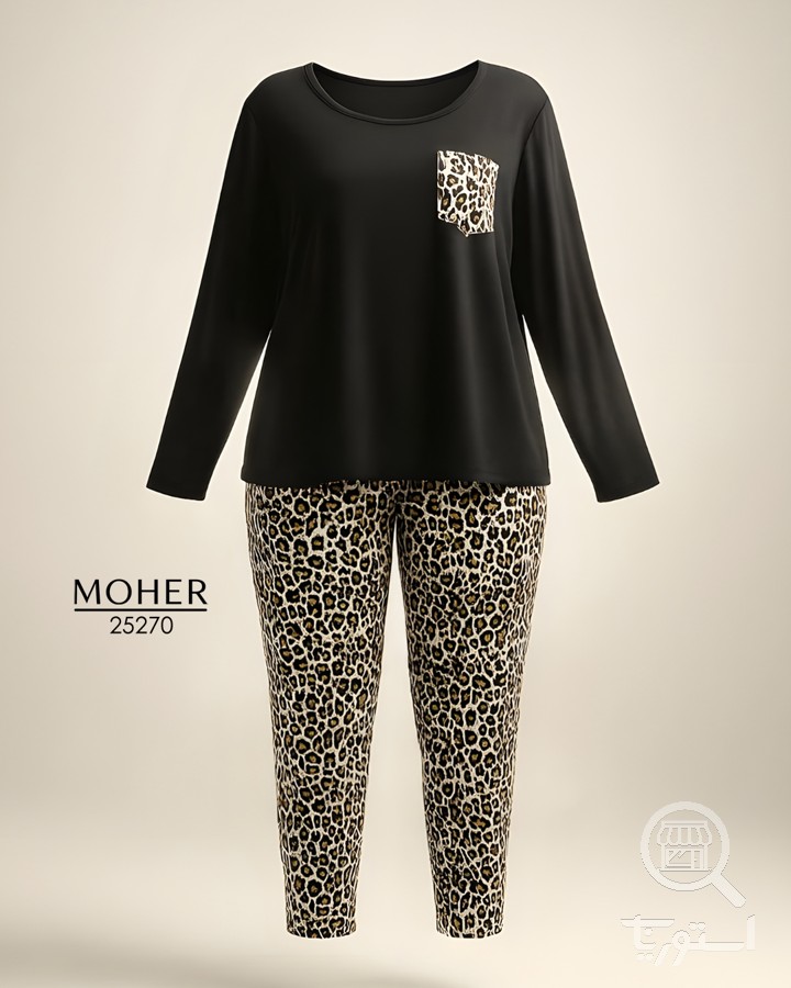 ست لباس راحتی زنانه سایز بزرگ مشکی و پلنگی