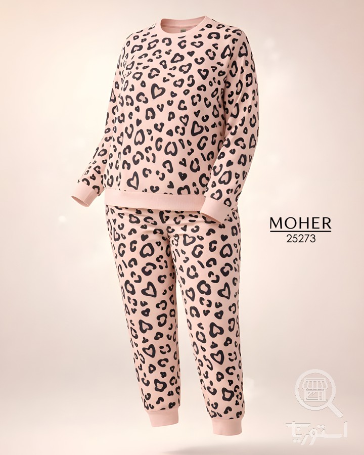 ست لباس راحتی زنانه سایز بزرگ طرح پلنگی قلبی