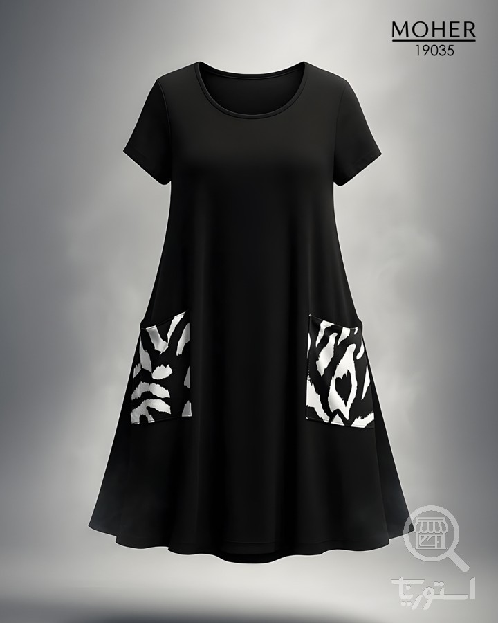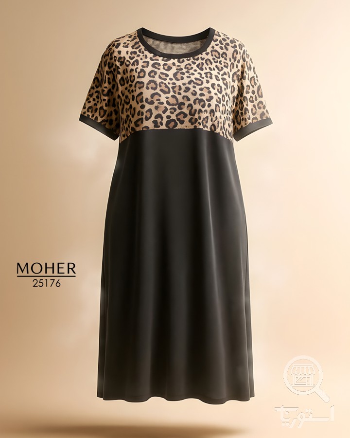 پیراهن زنانه سایز بزرگ مشکی با بالاتنه طرح پلنگی
