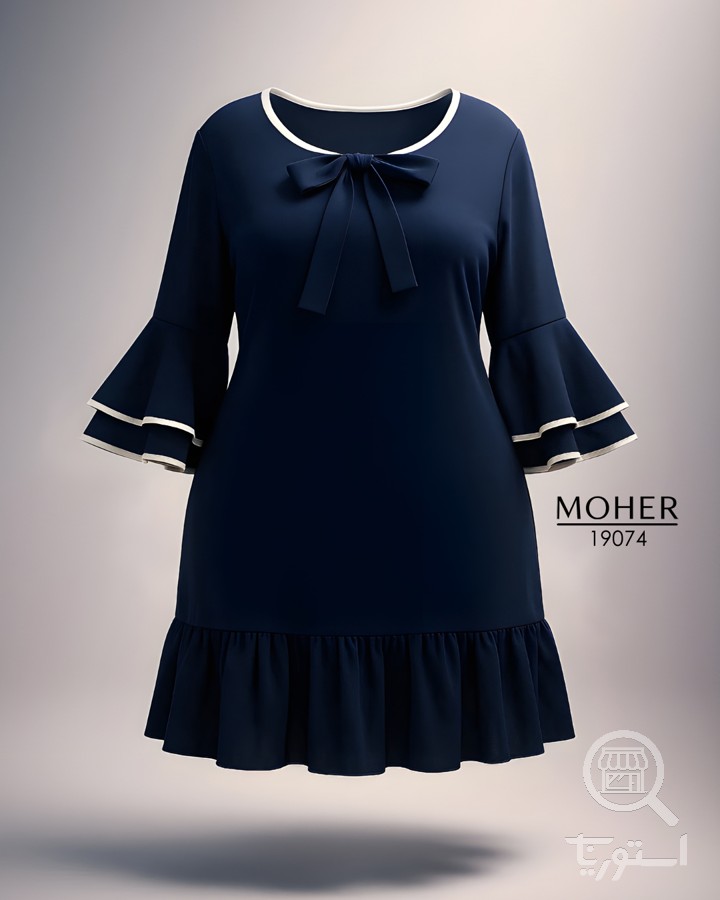 پیراهن زنانه سایز بزرگ سرمه ای طرح کلاسیک