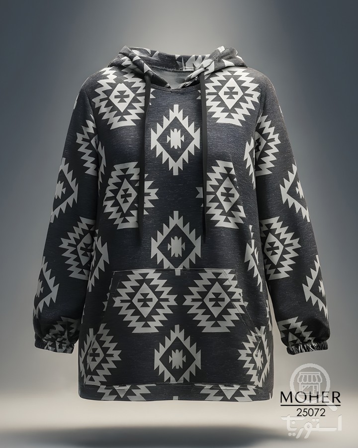 هودی زنانه سایز بزرگ طرح هندسی