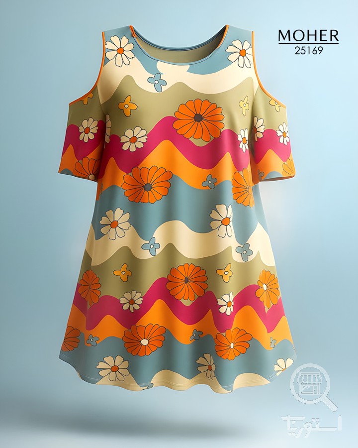 پیراهن راحتی زنانه سایز بزرگ طرح گلهای رنگی