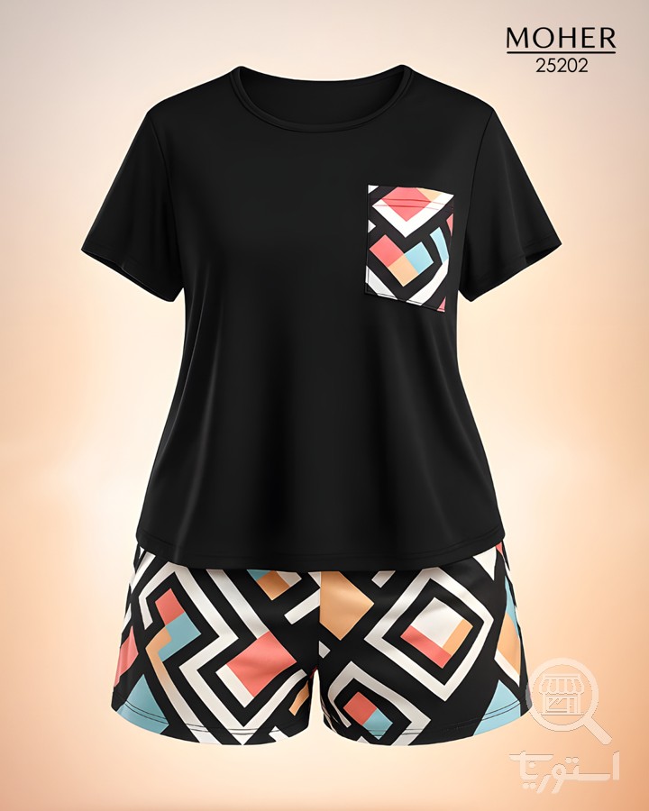 ست تیشرت و شورت راحتی سایز بزرگ طرح هندسی مدرن