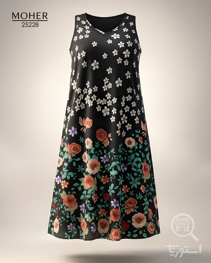 پیراهن زنانه سایز بزرگ گلدار زمینه مشکی