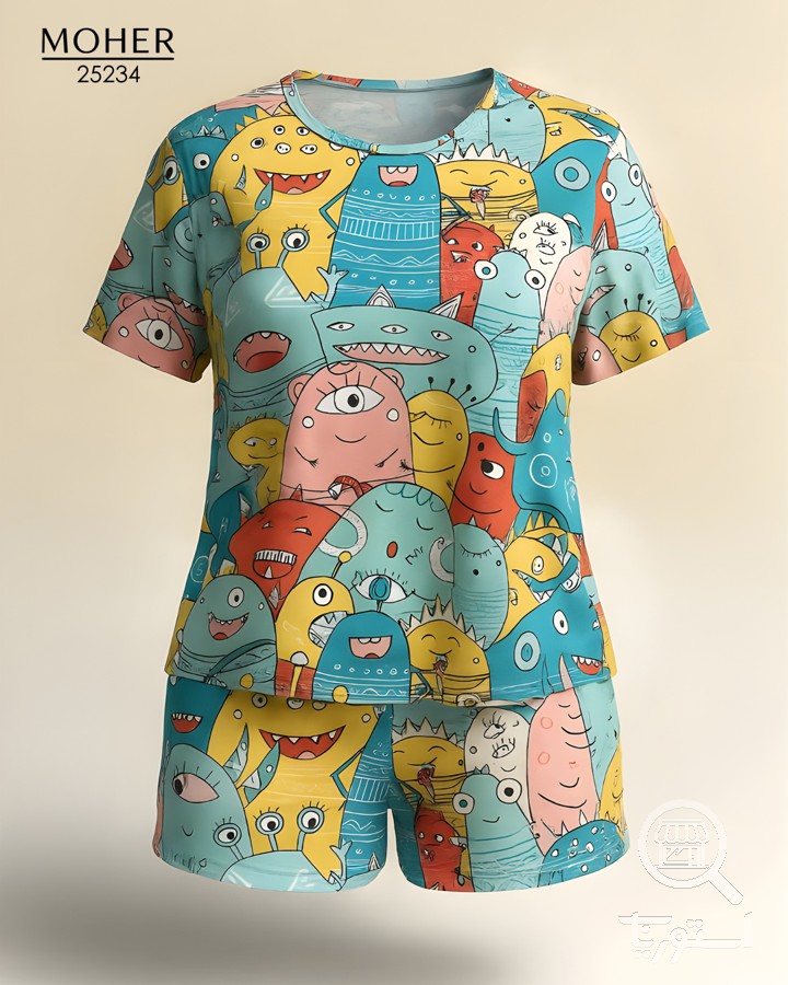 ست راحتی زنانه سایز بزرگ طرح موجودات فضایی