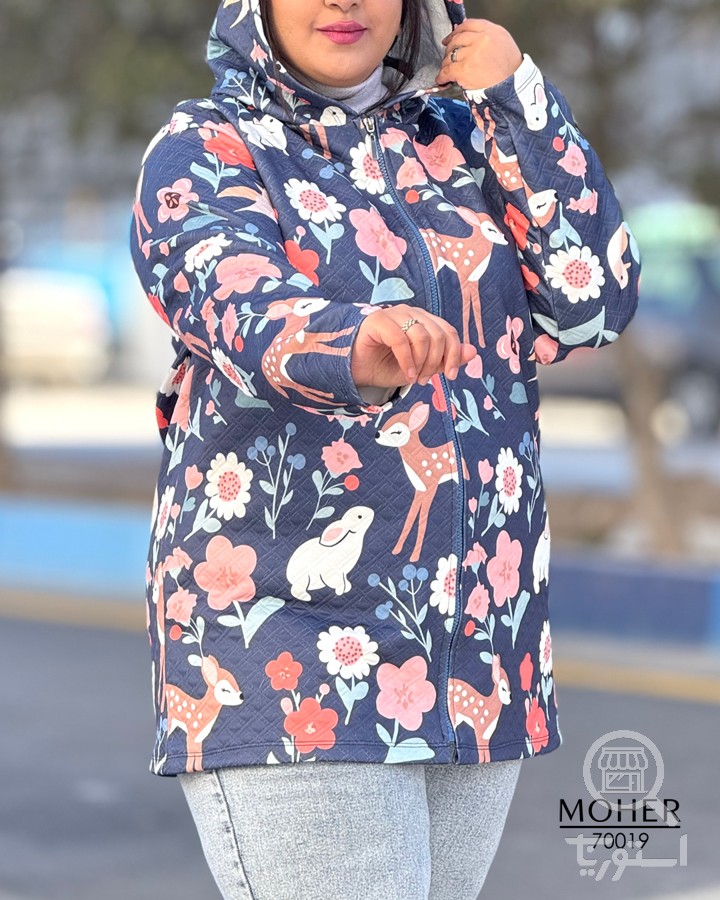 هودی زنانه سایز بزرگ ژاکارد طرح باغ