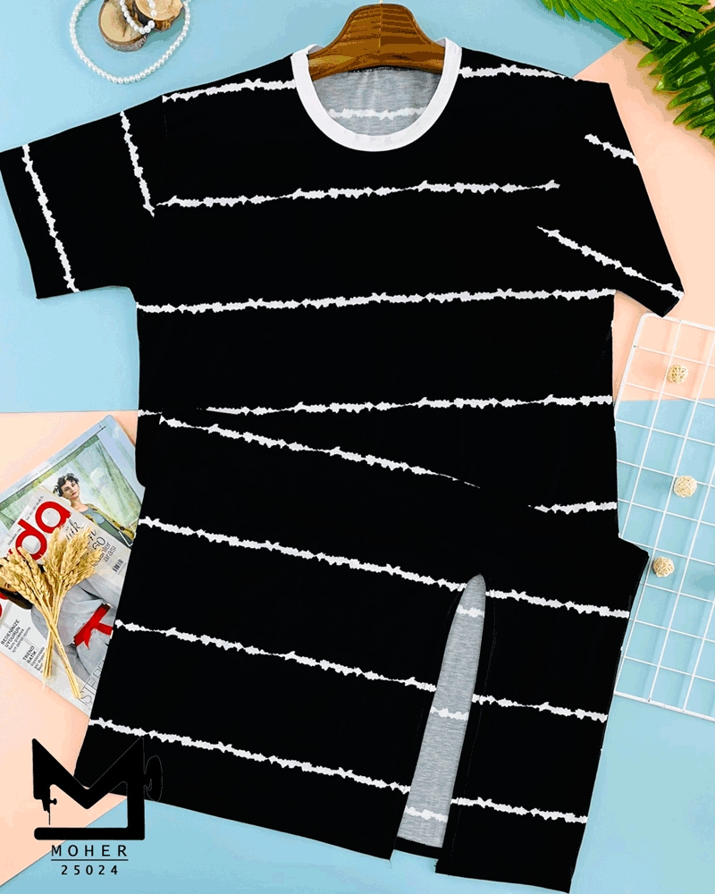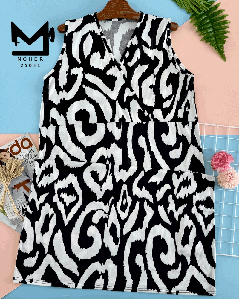 پیراهن یقه ضربدری سایز بزرگ طرح سیاه و سفید