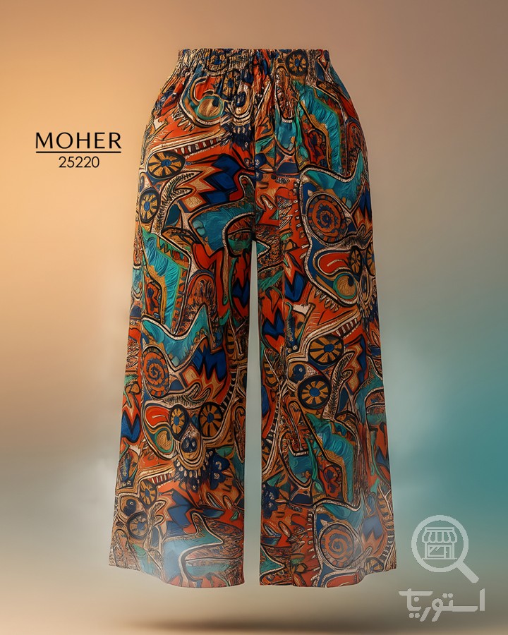شلوار زنانه سایز بزرگ طرح انتزاعی رنگی