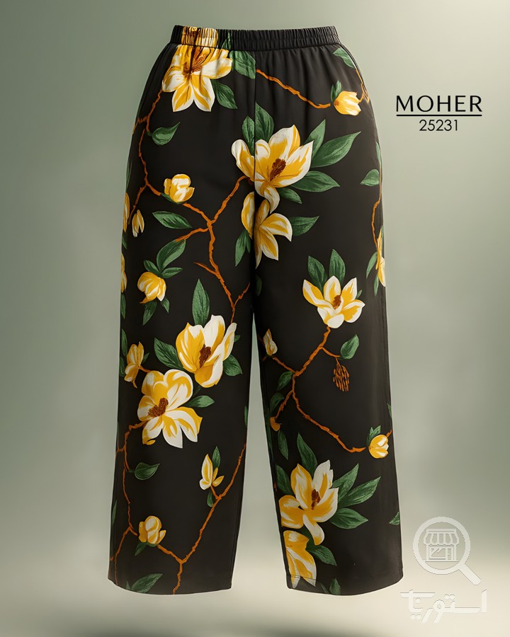 شلوار زنانه سایز بزرگ طرح گل ماگنولیا
