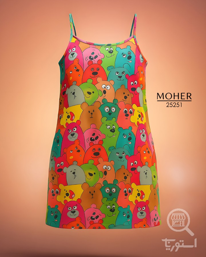 لباس خواب زنانه سایز بزرگ طرح خرسهای رنگی